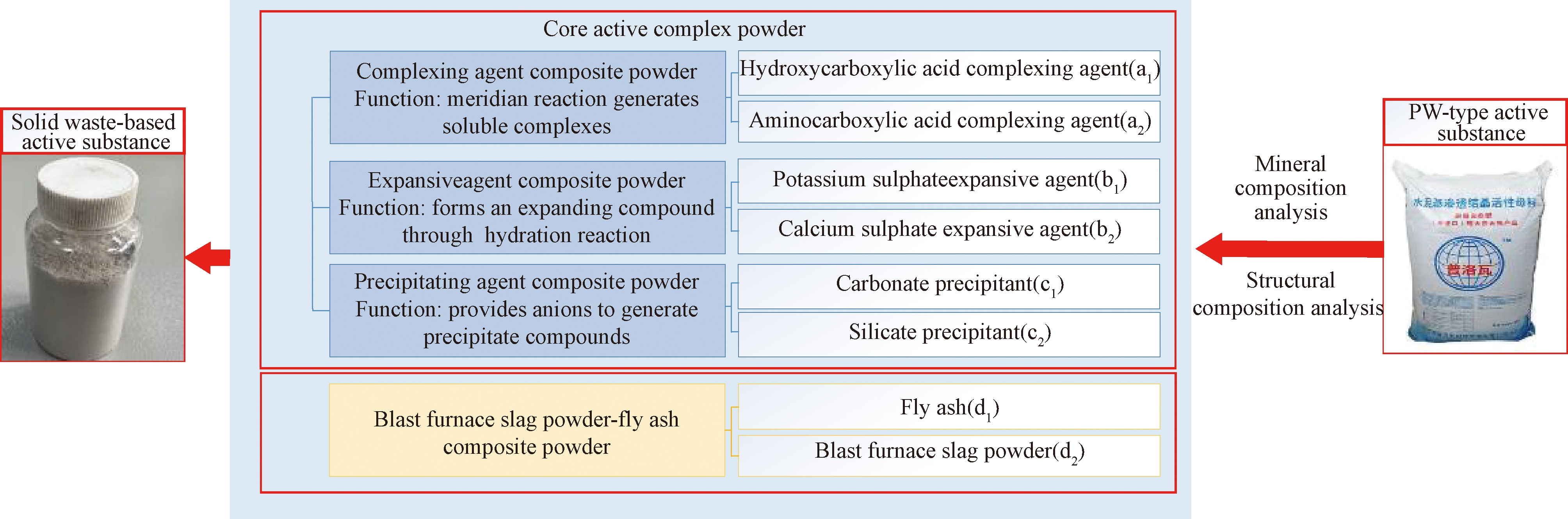 为缓解现有水泥基渗透结晶型防水材料(cementitious capillary crystalline waterproof, CCCW)依赖高成本原料现状,促进高炉矿渣与粉煤灰的资源化利用,创新性地采用全粉剂体系设计,基于普洛瓦型(Prova waterproof,PW)活性物质的组分特征,系统构建由羟基羧酸/氨基羧酸复合络合剂、硫酸钾盐/硫酸钙盐复合膨胀剂、碳酸盐/硅酸盐复合沉淀剂组成的多组分协同活性体系。以普通硅酸盐水泥和石英砂为基体材料,协同高炉矿渣微粉(简称矿粉)-粉煤灰复合粉构建多元胶凝体系,制备CCCW。通过正交试验设计结合功效系数法进行配比优化,其中,因素A为络合剂复合粉,即羟基羧酸络合剂(a1)/氨基羧酸络合剂(a2)的质量配比;因素B为膨胀剂复合粉,即硫酸钾盐膨胀剂(b1)/硫酸钙盐膨胀剂(b2)的质量配比;因素C为沉淀剂复合粉,即碳酸盐沉淀剂(c1)/硅酸盐沉淀剂(c2)的质量配比;因素D为矿粉-粉煤灰复合粉,即粉煤灰(d1)/矿粉(d2)的质量配比。综合考虑28 d抗折强度、28 d抗压强度、带涂层砂浆抗渗压力、去除涂层砂浆抗渗压力、湿基面黏结强度,确定最佳组合为A=2∶3、B=4∶1、C=3∶2、D=2∶3。在最佳配比下,最优试件L8的性能参数28 d抗折强度为8.36 MPa,28 d抗压强度为34.16 MPa,较PW分别提升10.1%、62.9%;带涂层砂浆抗渗压力为1.3 MPa,去除涂层砂浆抗渗压力为1.0 MPa;湿基面黏结强度为1.08 MPa,较PW提升7.8%,符合国标要求。络合剂复合粉通过与混凝土中的Ca²⁺发生络合反应,生成的可溶性钙络合物在水分作用下向混凝土内部扩散,并在裂缝或孔隙处重新释放Ca²⁺,进而与CO₃²⁻、SiO₃²⁻等反应生成C—S—H凝胶网络,堵塞孔隙并修复裂缝;膨胀剂复合粉在水化过程中产生适度体积膨胀,挤压毛细孔和微裂缝;沉淀剂提供CO₃²⁻、SiO₃²⁻等与Ca²⁺结合生成沉淀物,直接填充裂缝。矿粉-粉煤灰复合粉中大量CaO、SiO₂在碱性孔隙液中发生水解,释放Ca²⁺与SiO₃²⁻,形成C—S—H凝胶网络。研究结果为高炉矿渣与粉煤灰在防水材料中的高效资源化利用提供了新路径。