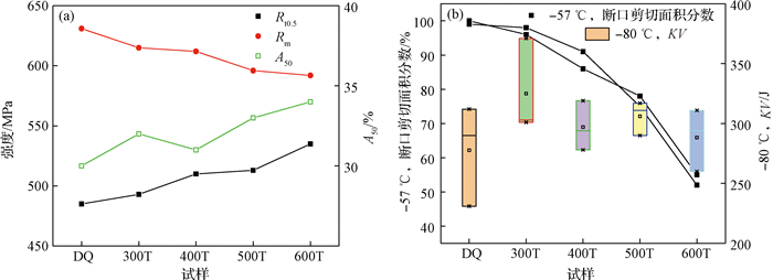 回火温度对X70Q管线钢DWTT性能的影响